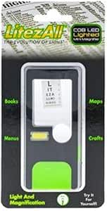 No more struggling to read the fine print! The LitezAll mini magnifier also adds a convenient slide on/off light. The mini magnifier is perfect for your purse, briefcase, glove box, toolbox, tackle box, hobby kit or anywhere you need quick easy lighted magnification. Use it for maps, books, menus and crafts. Pocket sized in convenience in a device measuring approximately 3 3/4" H x 1 1/4" W x 1/4" D. Uses 2 LR1130 Batteries (Included)