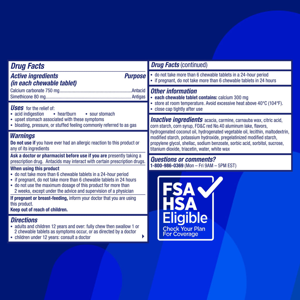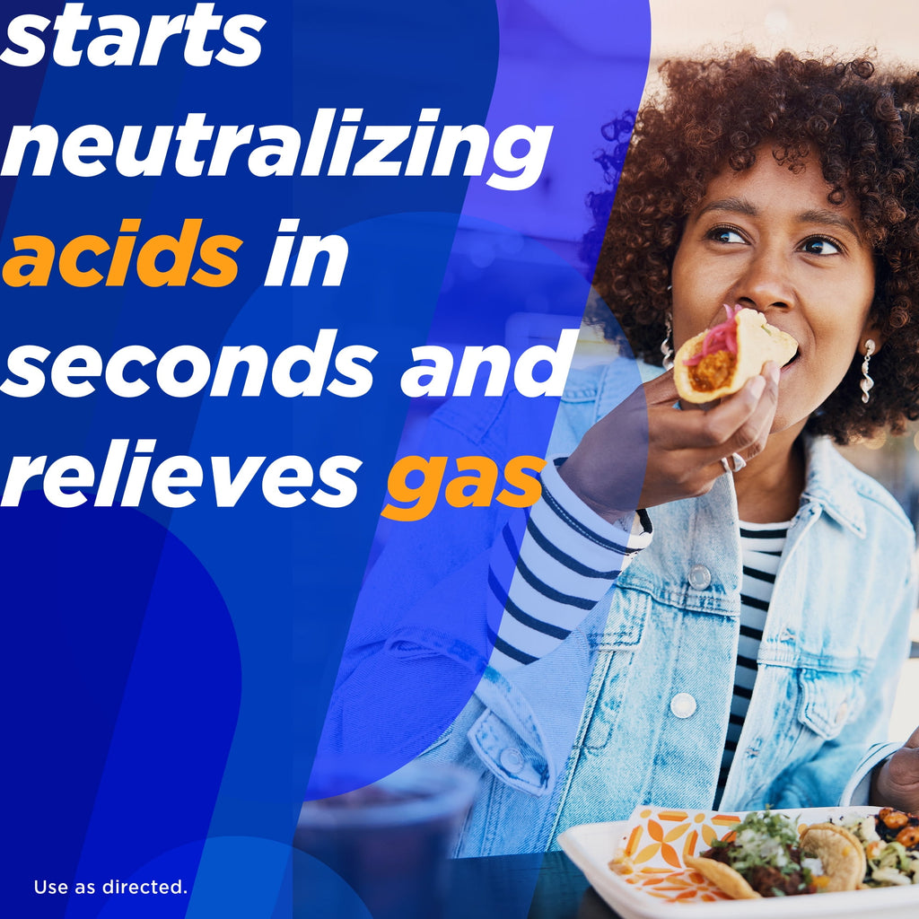 Alivio rápido de la acidez estomacal, el gas, la indigestión ácida, el estómago agrio y el malestar estomacal relacionado con estos síntomas.