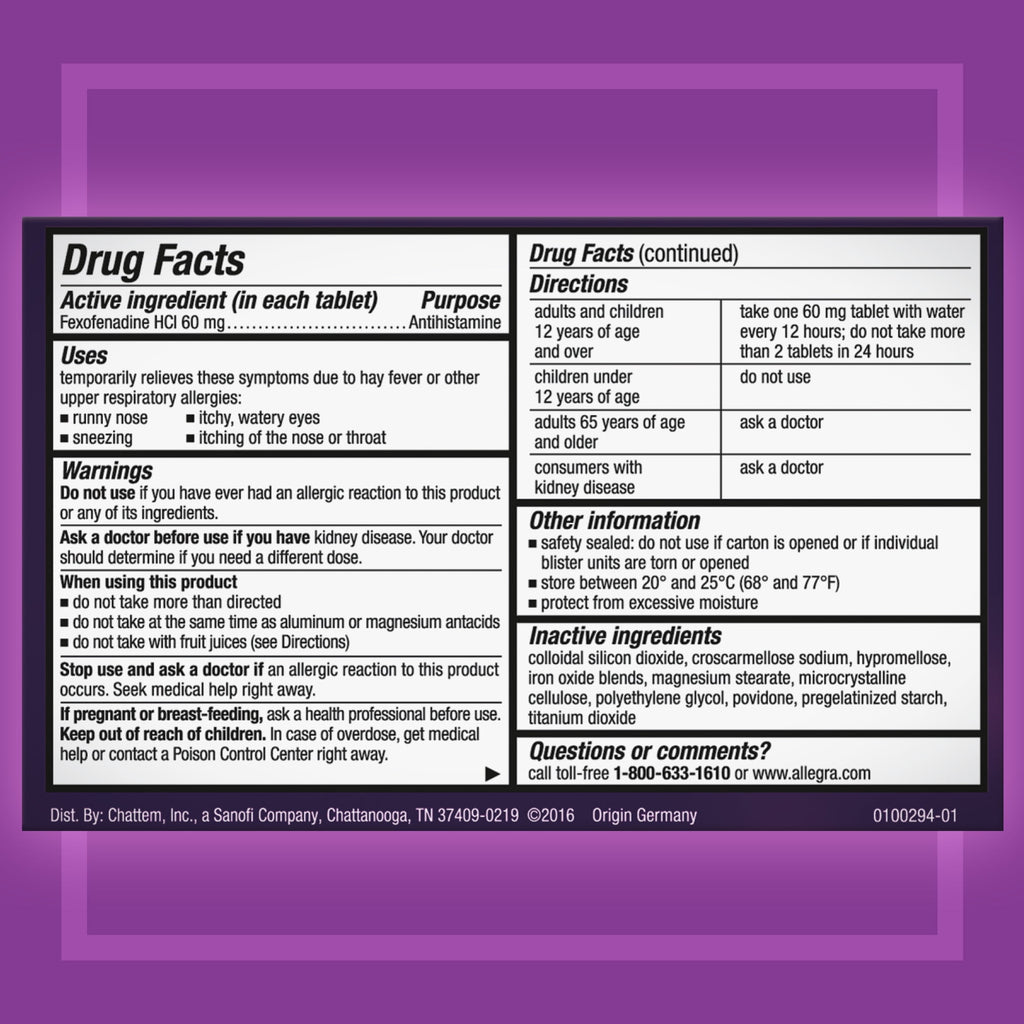 Alergias interiores y exteriores: use tabletas Allegra para alergias interiores y exteriores, incluidas las alergias de temporada y las alergias para mascotas