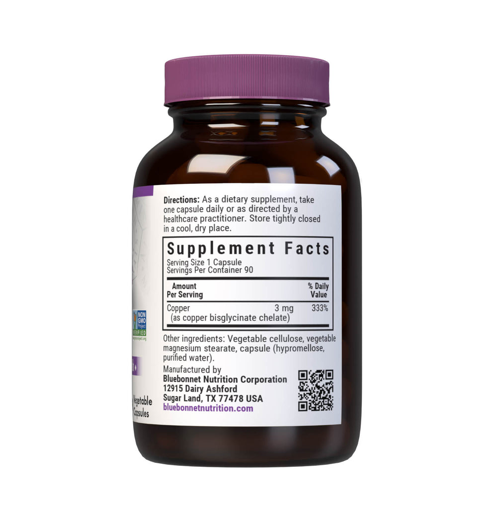 3 mg de cobre del quelato de bisglcyinato de cobre Mineral quelado de Albion Sin soja, sin gluten, no transgénica, certificado kosher, sin lácteos, vegano