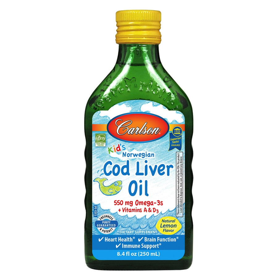 Carlson for Kids Norwegian Cod Hiver Oil ha recibido numerosos premios por su gusto y calidad. Una sola cucharadita de 1/2 proporciona 550 mg de Omega-3, incluidos EPA y DHA, que admiten la salud del corazón, el cerebro y el sistema inmune. ...