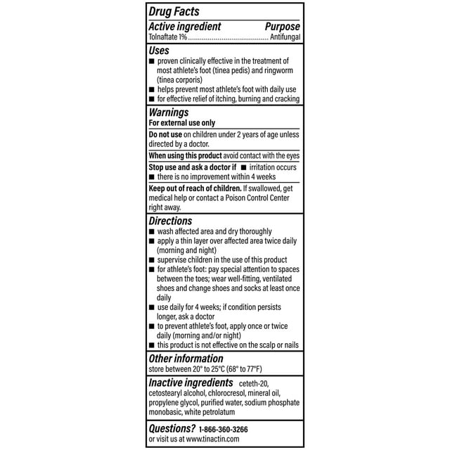 Contiene tolnafato 1%: elija este ingrediente de tratamiento de hongos para aliviar la piel de picazón de Tinea pedis (infección por hongos del pie del atleta).