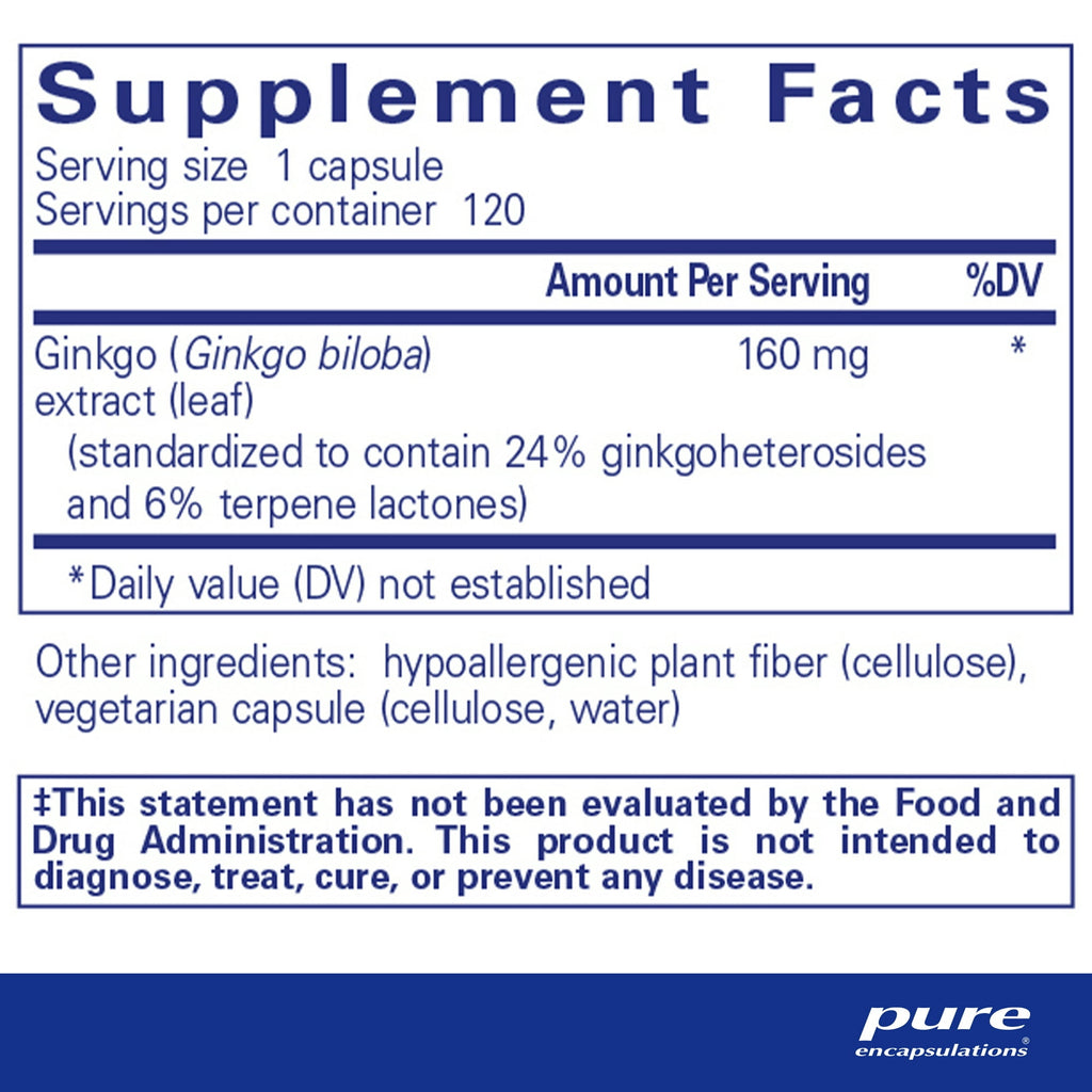 Encapsulaciones puras ginkgo 50 160mg 120 cápsulas