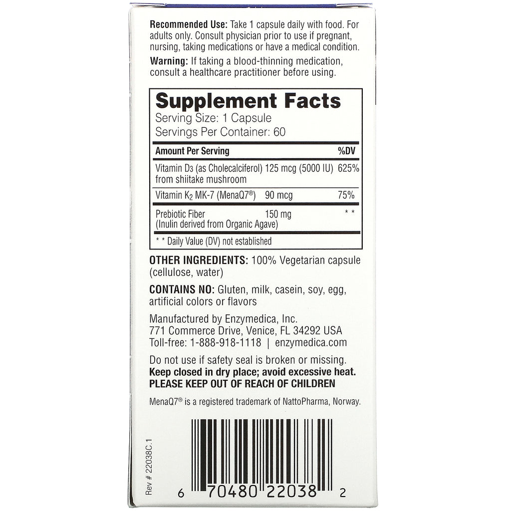 Enzymedica vitamina vegana D3 + K2 60 Cápsulas