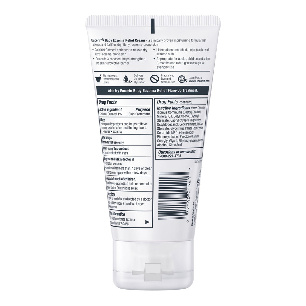 Eucerin Baby Eczema Relief Cream contains a clinically proven moisturizing formula that relieves dry, itchy, eczema-prone skin