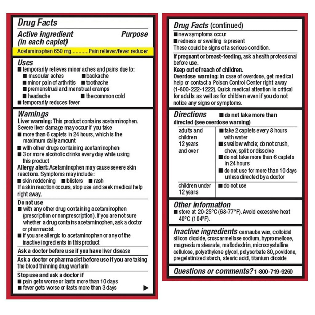 Los dolores de dolores musculares proporcionan un alivio fuerte y rápido del dolor. Con 650 miligramos de acetaminofeno, este analgésico y el reductor de fiebre actúan rápidamente para ayudar a aliviar dolores y dolores menores por hasta ocho horas. Los dolores musculares de Tylenol son resistentes para el dolor corporal pero suave para su estómago.