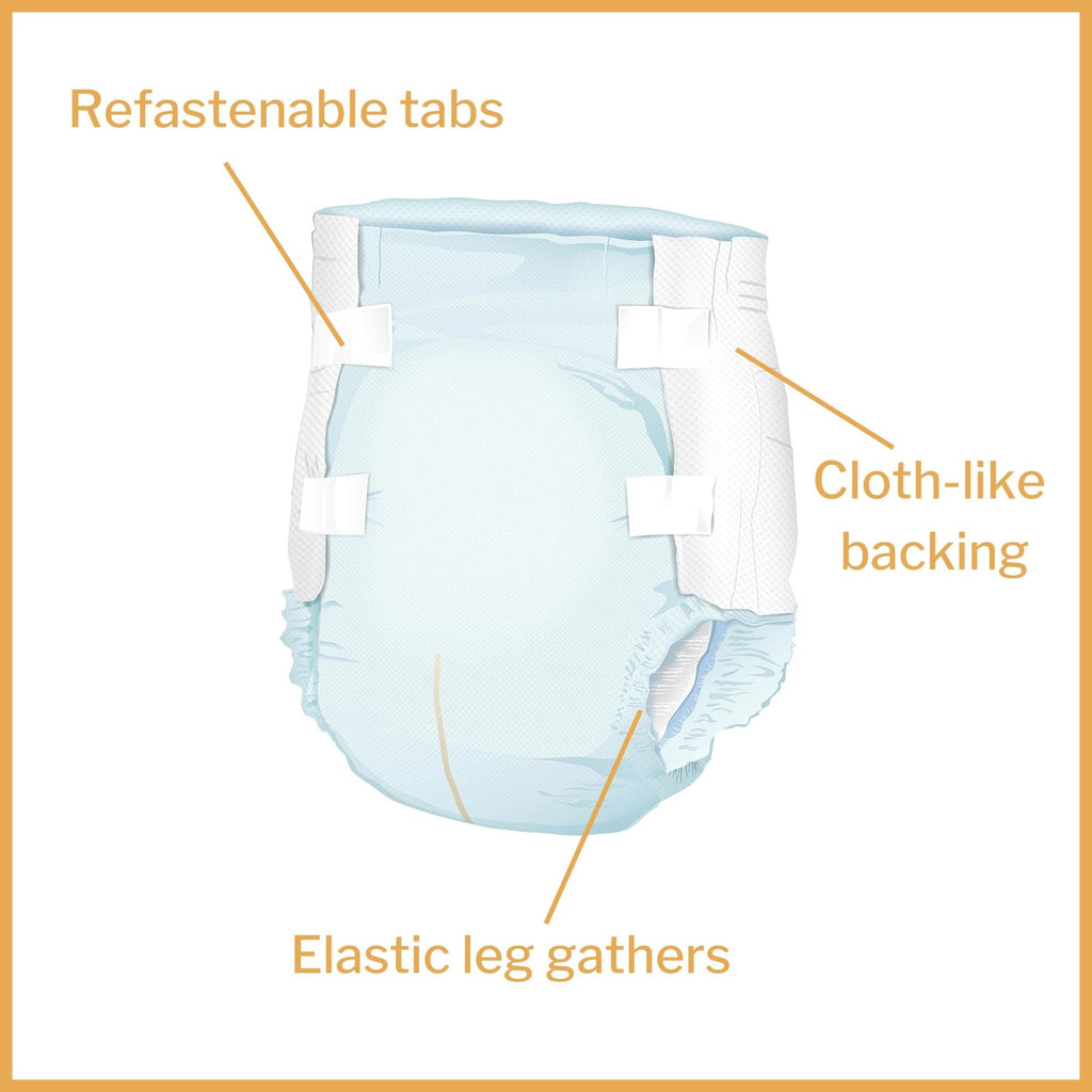 The light-absorbency briefs have a premium acquisition layer that rapidly absorbs wetness into the core