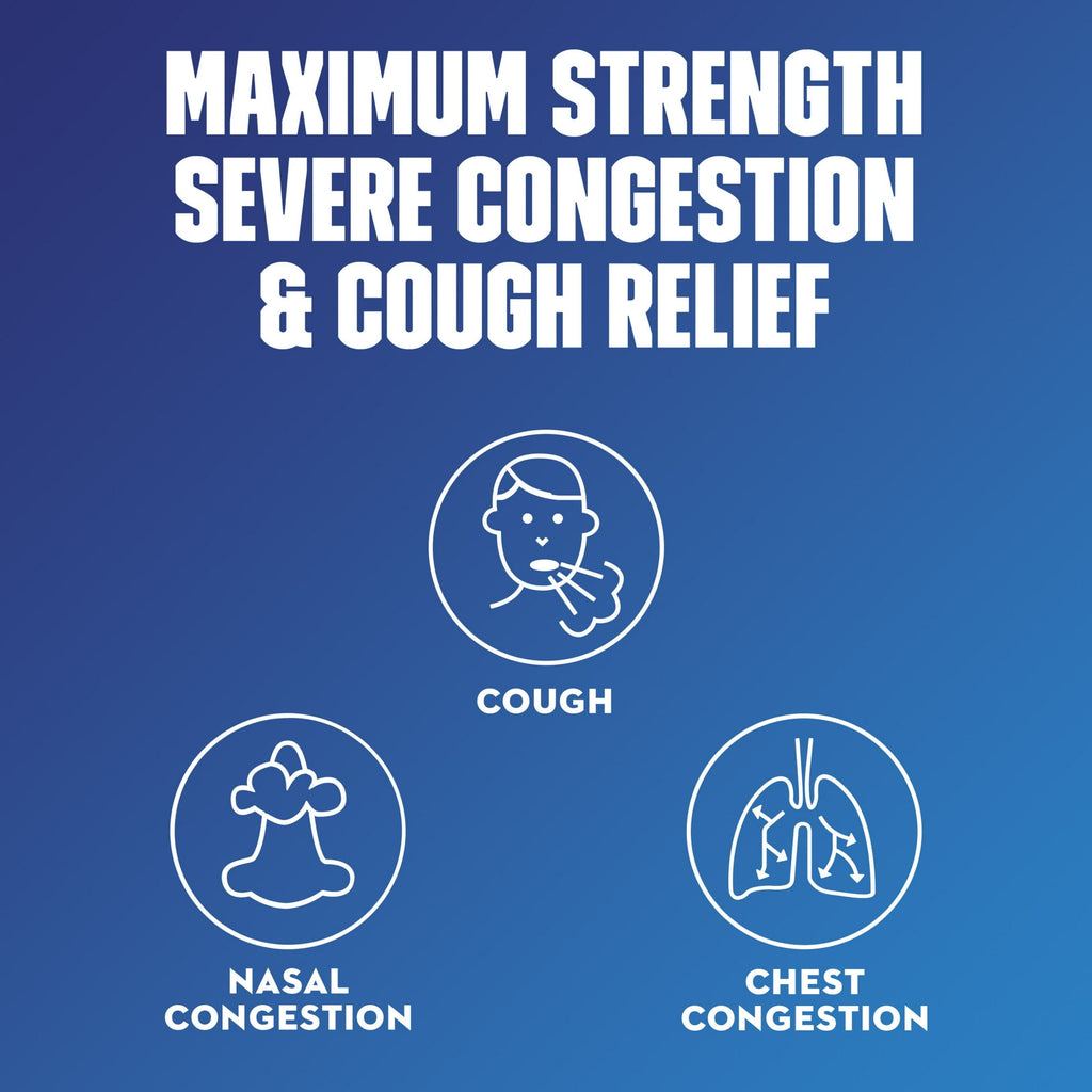 Maximum Strength Mucinex® Fast Max Severe Congestion & Cough provides powerful multi-symptom relief for your worst symptoms