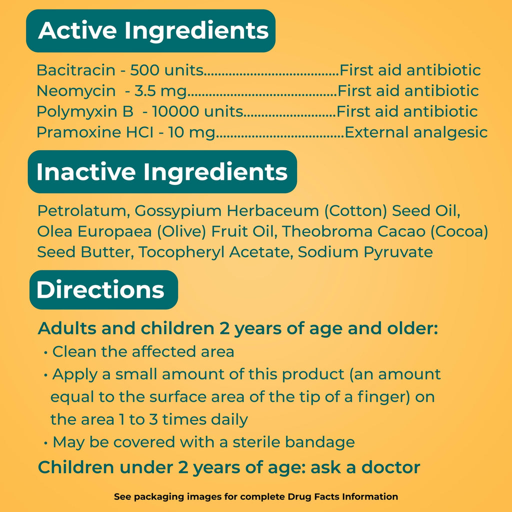 Made with the infection-fighting antibiotic ingredients neomycin, bacitracin zinc, & polymyxin B