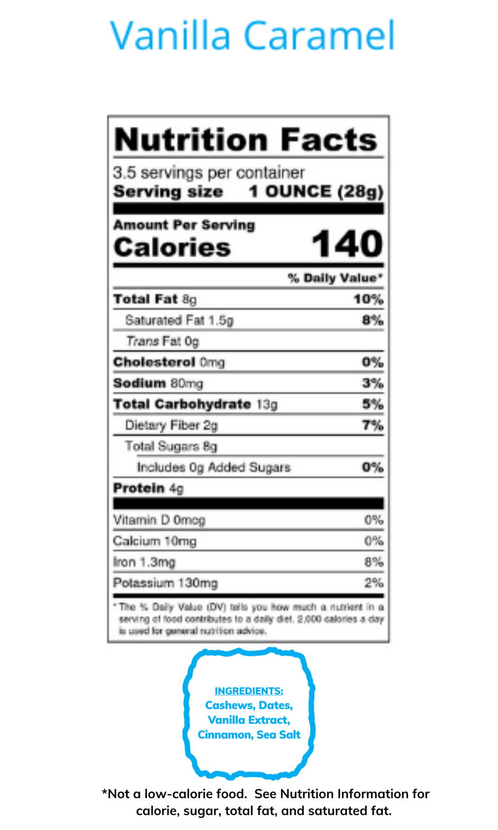 Estos anacardos crujientes y deliciosos son ricos y llenos de sabor. El caramelo de vainilla cubierto de dulzura de las fechas será el refrigerio perfecto para cualquier momento del día. ¡Solo 5 ingredientes, 4G proteína por porción y sin azúcar agregada!