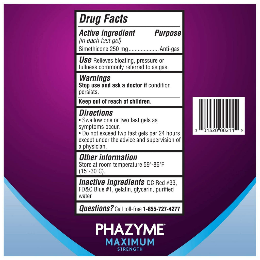 El alivio de gas máxima de fazyme se pone a trabajar rápidamente para aliviar la presión del gas y la hinchazón. Cada sabor a cereza de gran sabor a masticable contiene 250 mg de simeticona, el ingrediente anti-gas de OTC recomendado por el médico n. ° 1.