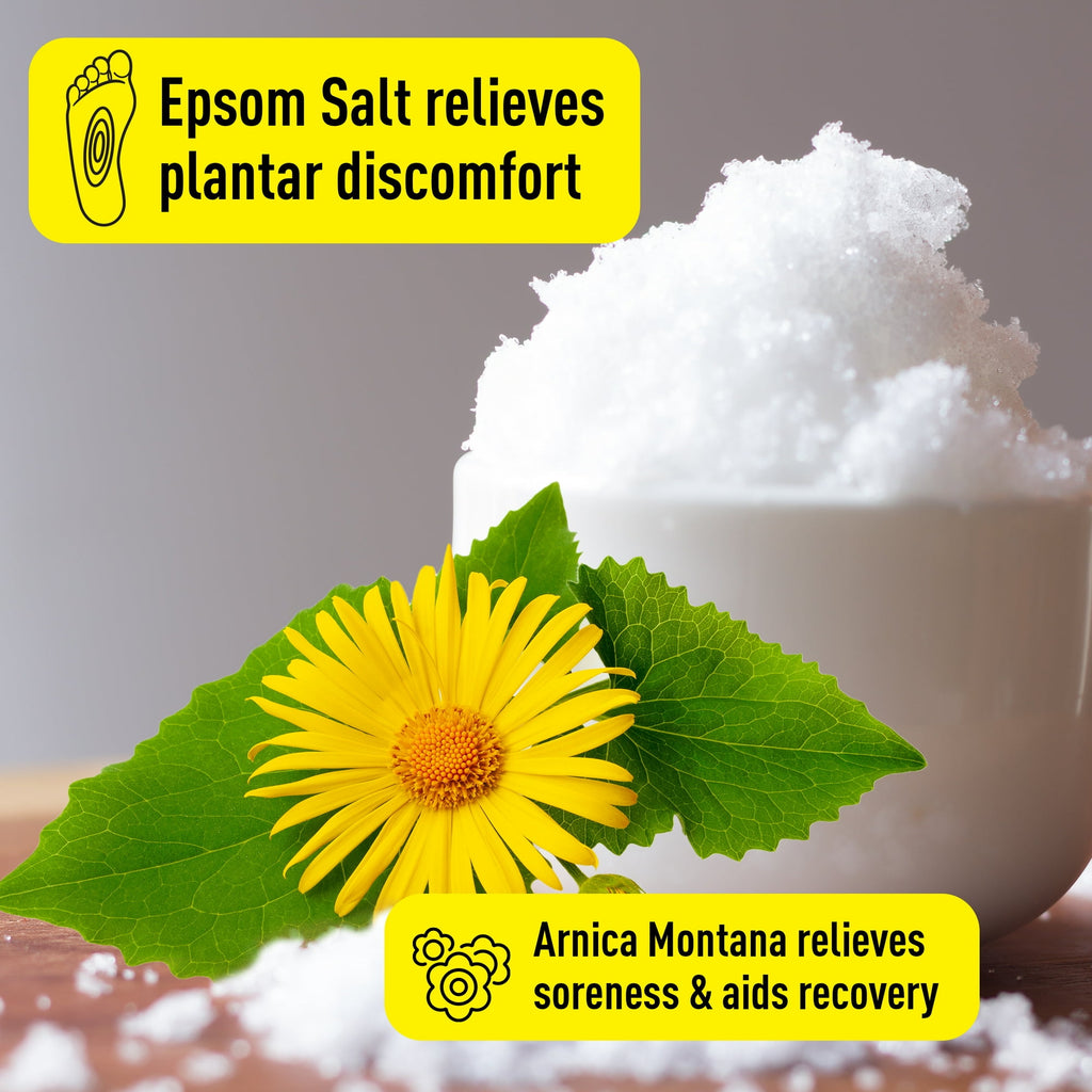 El dolor de tacón apuñalado, especialmente en su primer paso fuera de la cama en la mañana, es un signo clave de fascitis plantar. Nuestra fórmula de potencia combina la sal de remedio de remedio de confianza con extracto relajante de Arnica para ayudar a aliviar la hinchazón y el dolor de los talones y los arcos.