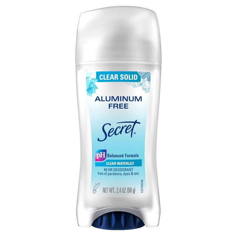 ¡El desodorante libre de aluminio secreto para las mujeres sigue claro y se mantiene claro! ¡Este desodorante no deja residuos blancos visibles o marcas blancas! Esto le brinda protección de olor de 48 horas y está libre de parabenos, tintes y talco.