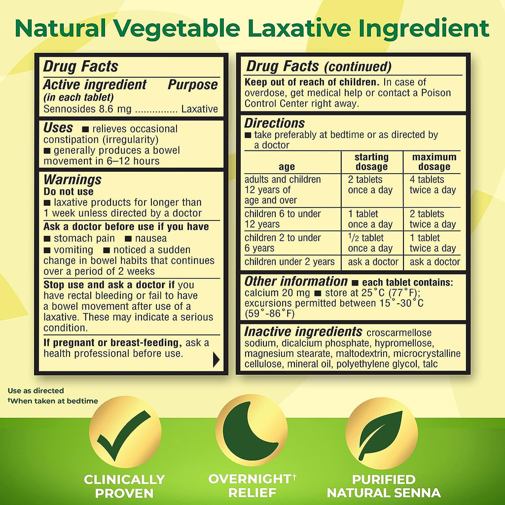 Clínicamente probado. Las tabletas laxantes de la resistencia regular de Senokot proporcionan un alivio suave y durante la noche del estreñimiento ocasional utilizando ingredientes laxantes de vegetales naturales. Uso para tratar el estreñimiento ocasional.