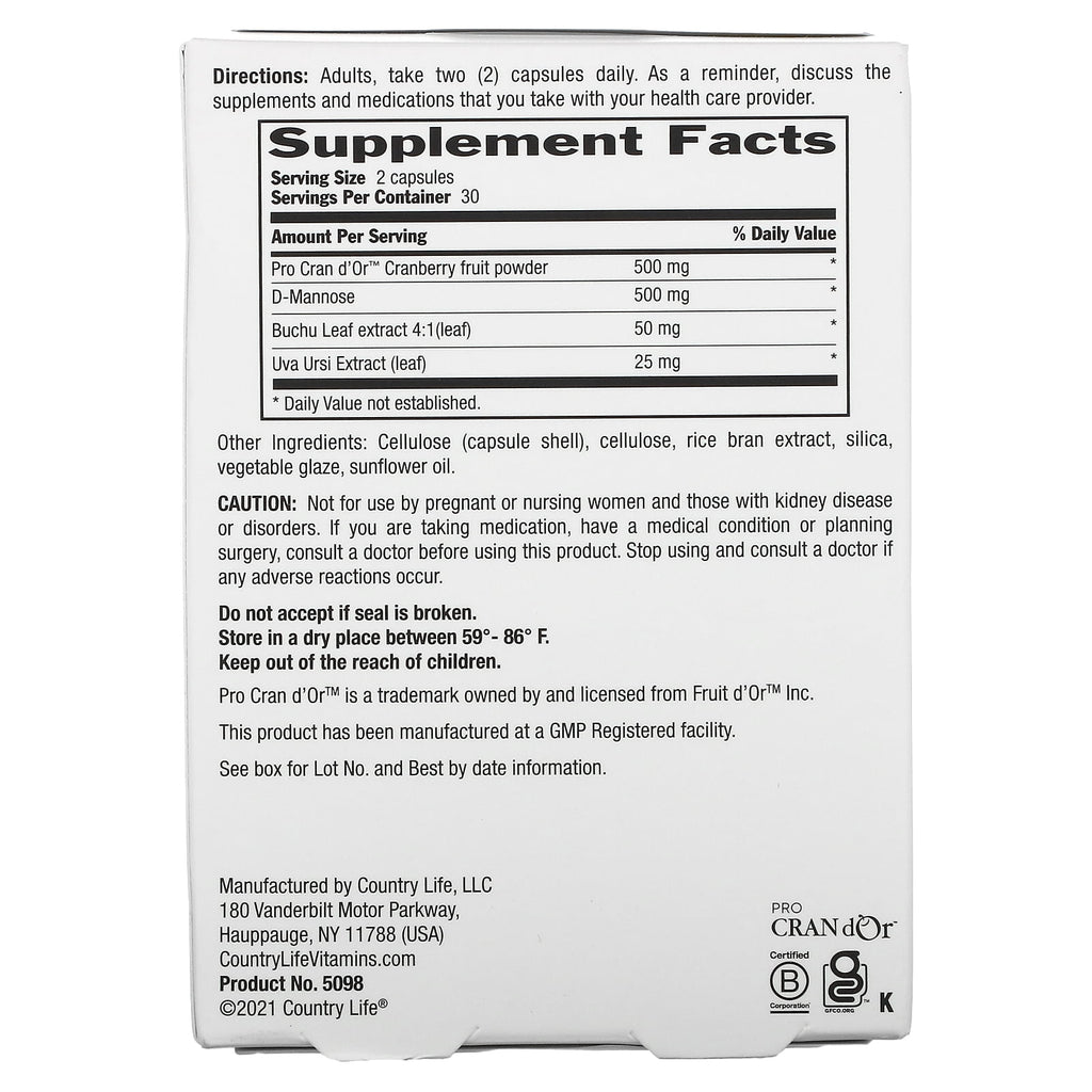 Formulado con el polvo de fruta de arándano Pro Cran d'Or ™ usando fruta de arándano 100% entera, sin relleno o aditivos.