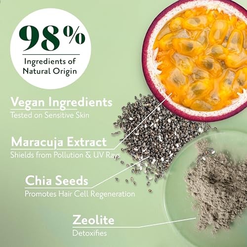 Gently removes impurities and excess oil from the scalp and hair without stripping natural moisture. Ideal for those looking for a fresh, balanced clean with every wash.. Suitable for daily use and all hair types, including sensitive scalps; Made with 98% ingredients from natural origin and 10.4% from organic farming; Maracuja extract enhances natural shine and helps tone the scalp and hair.