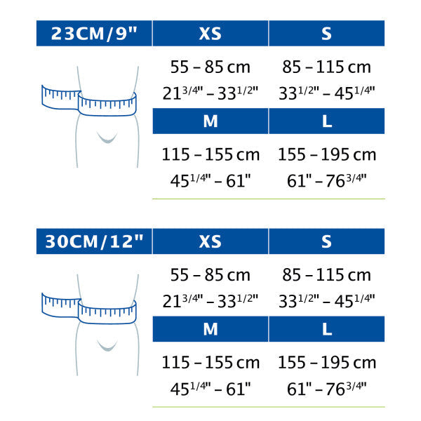 Comfortable abdominal binder with soft foam pad for extra cushioning to the injured area. Helps to reduce pain and supports wound healing through constant individual compression around the abdomen after surgery or trauma, available in two heights.