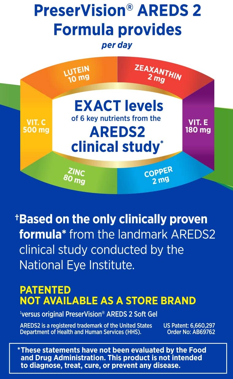 Bausch & Lomb PreserVision AREDS 2 Formula Eye Vitamin & Mineral Supplement Softgels