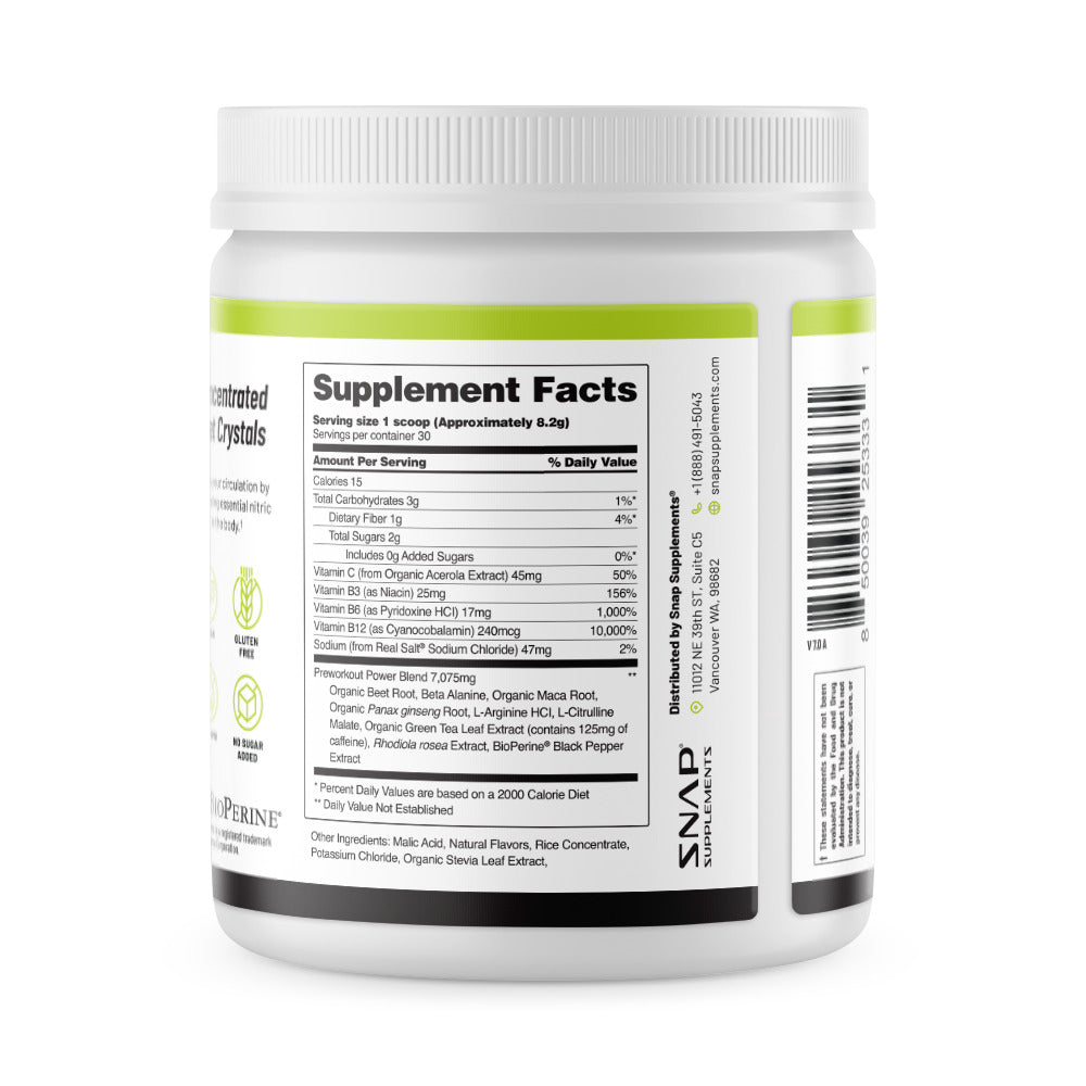 Activate essential nitric oxide production and crush your workouts. Nitrate-rich beets and bioavailable amino acids encourage healthy blood flow, deliver vital nutrients, and blast fatigue* | Nitric Oxide Organic Beets Pre-Workout, Size : 30 Servings, All Natural | Snap Supplements.