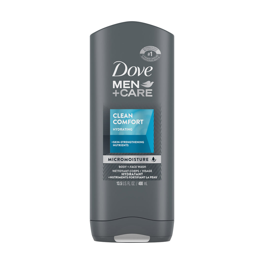 Dove MenplusCare Clean Comfort face and body wash is made with plant-based cleansers and skin-strengthening nutrients for healthier, smoother skin.