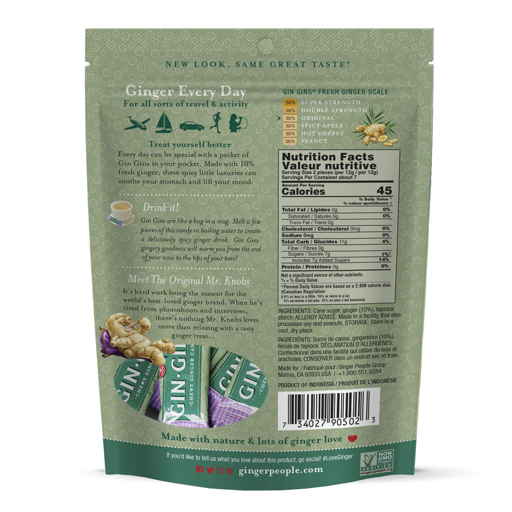 The Ginger People Gin Gins Chewy Ginger Candy are tingly, chewy treats that are an enjoyable alternative to anti-nausea medicine. Whether you're treating a belly ache, a bout of nausea or simply treating yourself, always have these classic, yummy ginger candies in your stash. They're made with 10-percent fresh, sustainably-farmed ginger, which is more than any other brand, and are sweetened with cane sugar and nothing artificial! Plus, they're non-GMO, gluten free, and vegan. Get ready for yumminess when you try The Ginger People Gin Gins Ch...