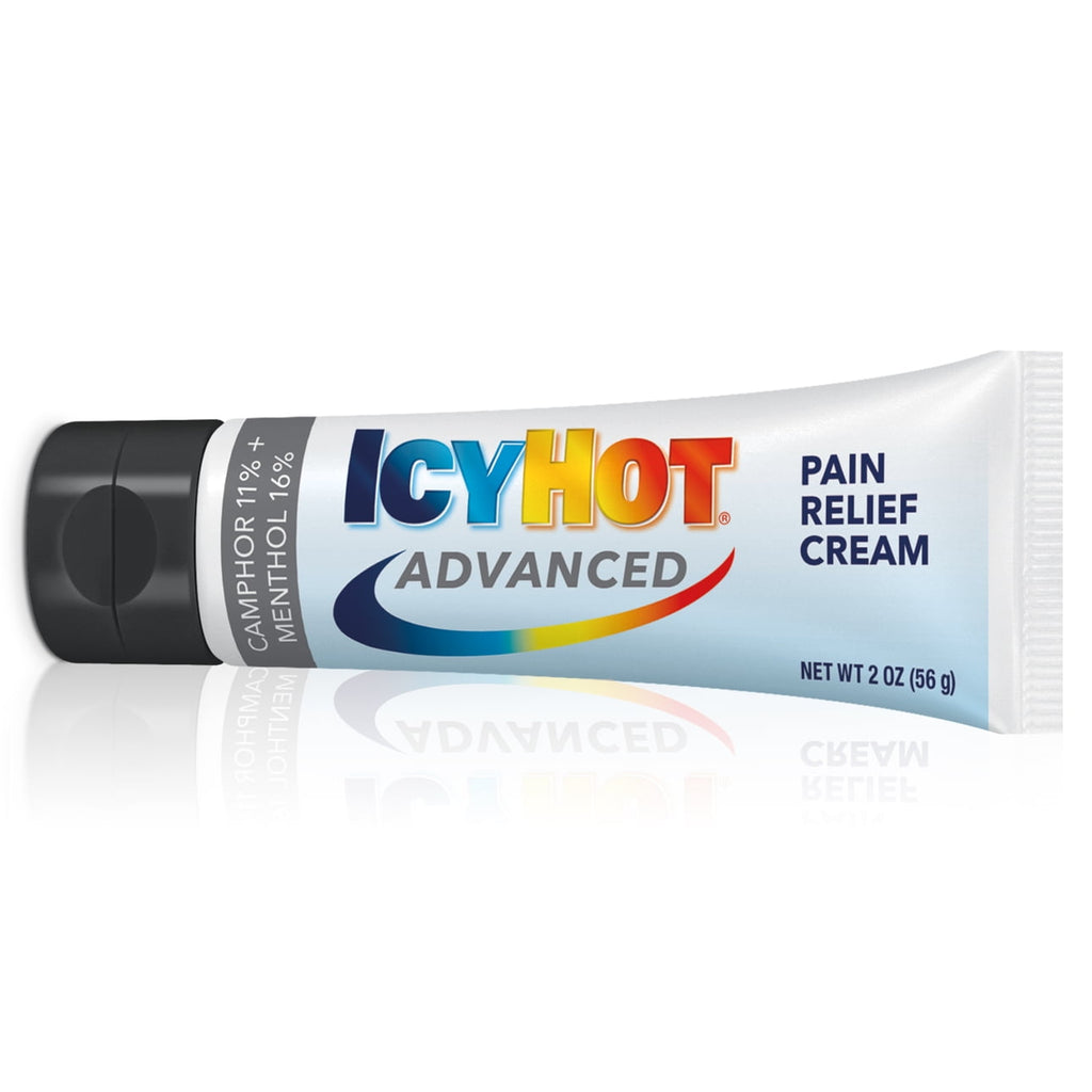 Icy Hot Advanced Relief Pain Relief Cream temporarily relieves minor pain associated with arthritis; simple backache; muscle strains; sprains; bruises; cramps.