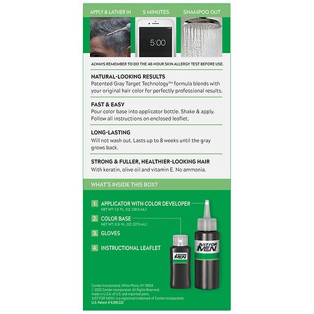 100% gray coverage. 100% easy. Instantly eliminates gray. Shades calibrated to match your original color. Won't wash out. Lasts up to 8 weeks until gray grows back. Single application haircolor kit. Natural-Looking Results: 100% natural look