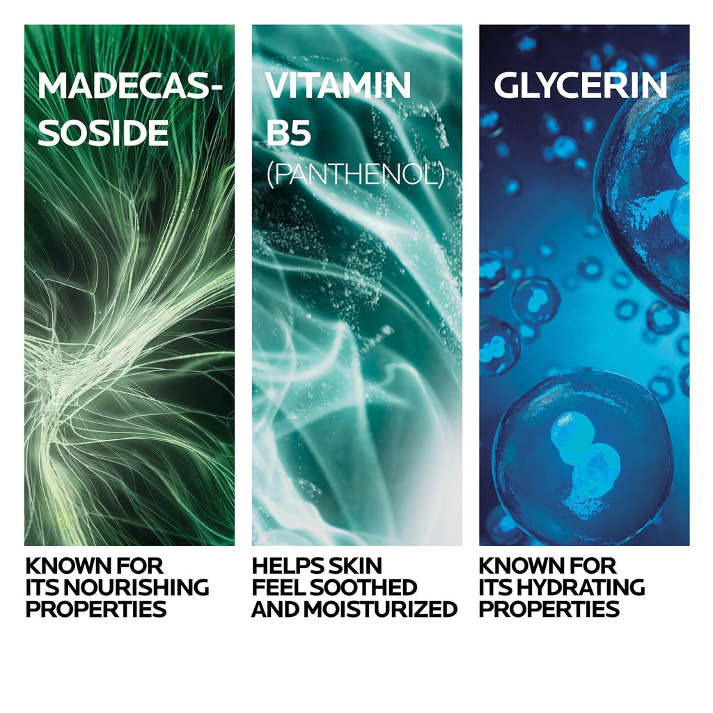 La Roche Posay Cicaplast B5 Repair Spray is a soothing, repair spray for dry, compromised, sensitive skin on the face & body. This soothing, repairing face spray moisturizer for dry skin repairs the skin barrier and instantly soothes skin's discomfort with an invisible texture and touch-free application. Key Ingredients: • Glycerin: a humectant, helps hydrate skin by absorbing water from the surrounding environment. Known for its hydrating properties. • Viatamin B5 (Pathenol): helps skin feel soothed and moisturized. • Madecassoside: known for its nourishing properties. How to Use: A...