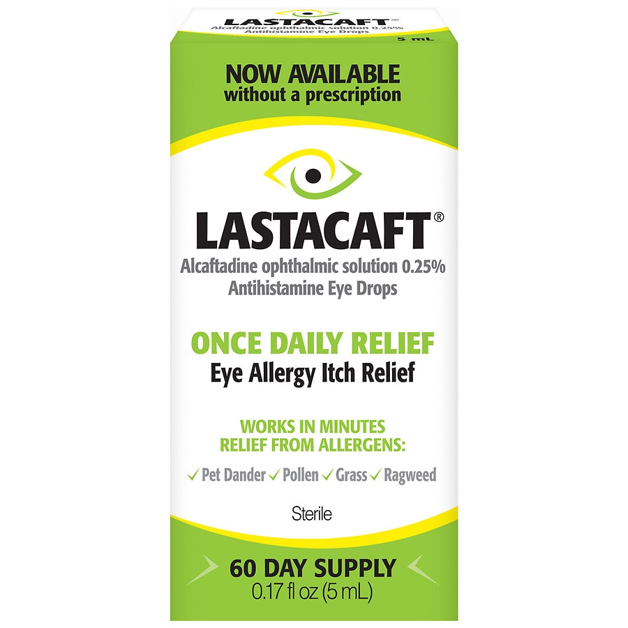 When your eyes become itchy from allergies, look to LASTACAFT Once Daily Eye Allergy Itch Relief Antihistamine Eye Drops for fast-acting, long-lasting relief. Just a single drop of LASTACAFT in each eye once per day relieves itchy eyes due to allergies in as little as 3 minutes and lasts all day long (through 16 hours).