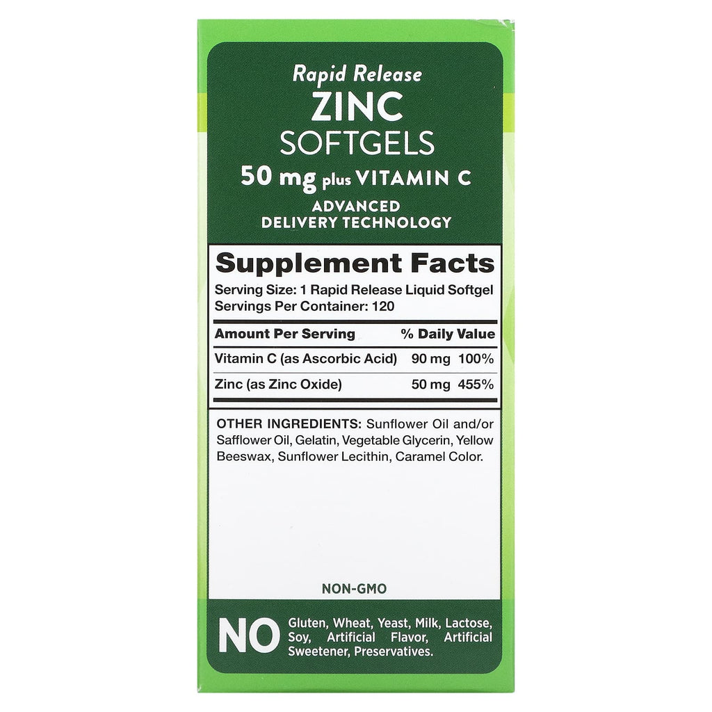 Nature's Truth Zinc with Vitamin C 50mg 120 Softgels