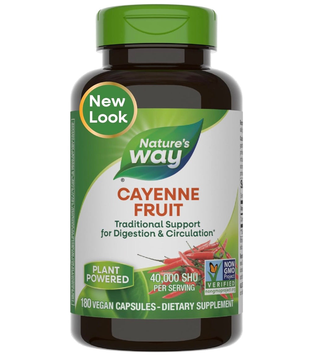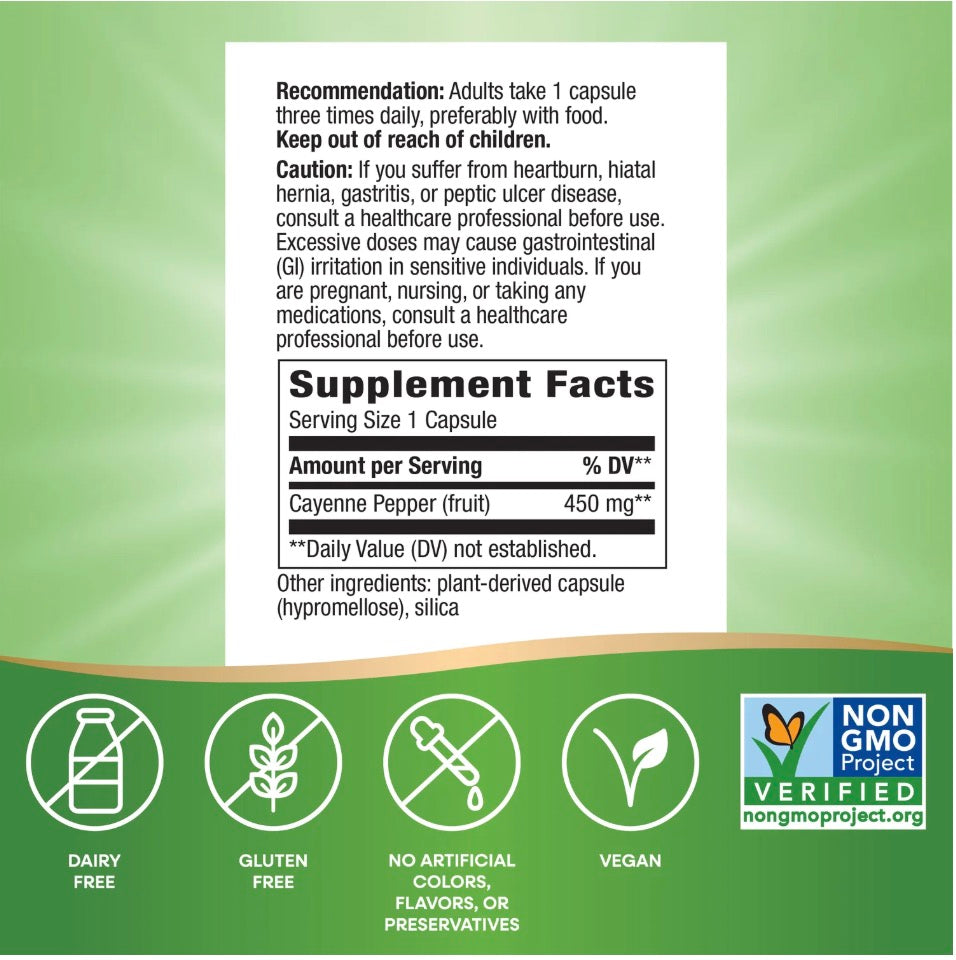 Cayenne Pepper (Capsicum annuum) fruit is a blood-red warming herb that invigorates multiple body systems. Special blending guarantees 0.25% capsaicin with a consistent potency of 40,000 H.U. (Heat Units).