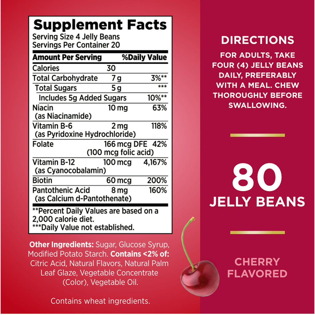 5G OF SUGAR PER SERVING: Sweet cherry taste makes Nature's Bounty® Energy Jelly Beans the most delicious way to support energy metabolism*