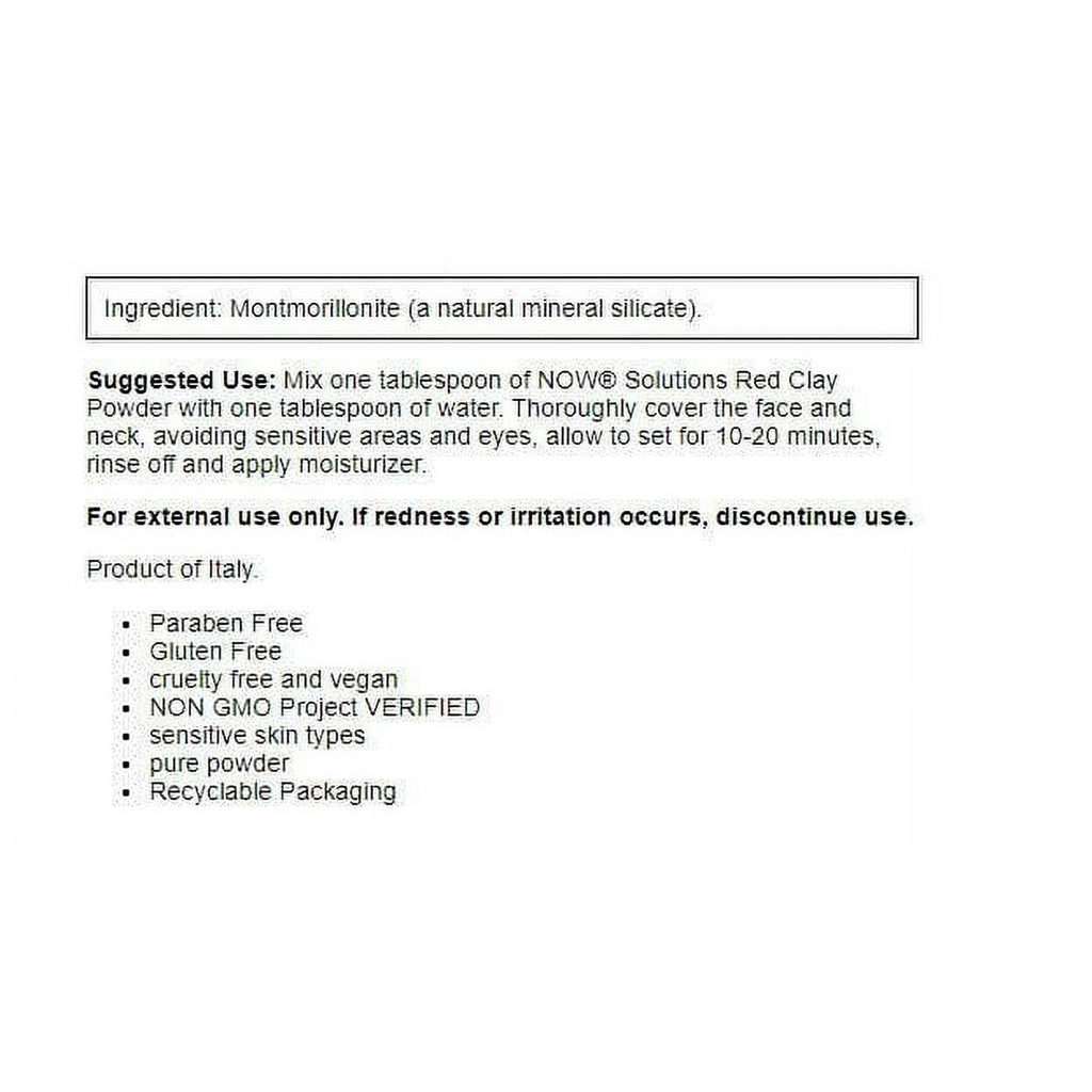 NOW Foods Mediterranean 100% pure Red Clay Powder is a natural powder clay that is highly absorbent and mixes easily with water and other moisturizing products.