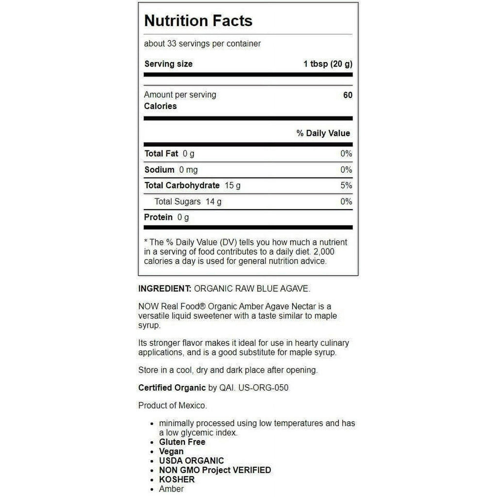 NOW Real Food Organic Agave Nectar Amber is a low glycemic sweetener. Known in Mexico as aguamiel, or "honey water", Agave Nectar was considered a gift from the gods by the ancient Aztecs, and today is considered nature’s perfect sweetener by many.
