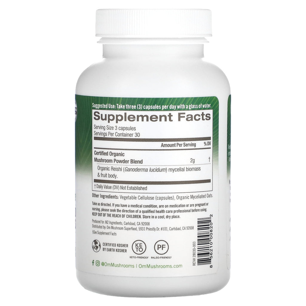 Reishi is an adaptogen that can help the body cope with occasional stress in healthy ways that keep you feeling calm and balanced. Try Om Reishi capsules anytime you need to support a healthy reset. Why mushrooms? Mushrooms are truly a unique superfood. They contain many bioactive nutrients that we have a hard time getting from plant or animal sources. Each serving of Om provides 2,000 mg of Mushroom Power