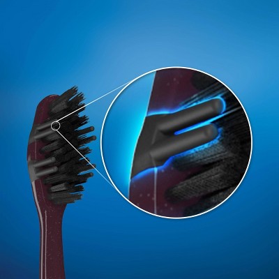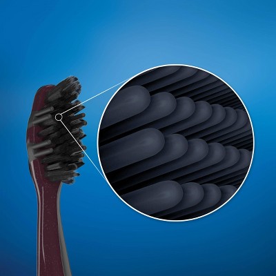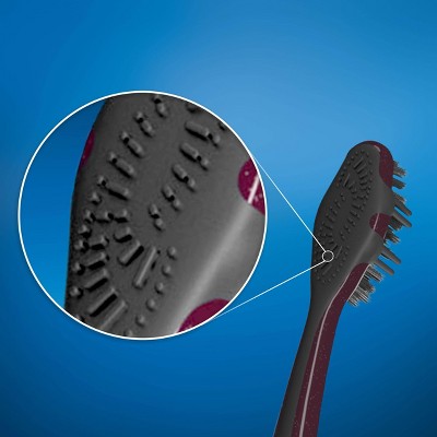 The Oral-B Charcoal toothbrush features charcoal infused bristles! It whitens teeth by removing surface stains. PowerTip bristles help clean plaque in hard to reach places while Gum Massagers gently massage your gums and help clean along the gumline. Additionally the Tongue and Cheek Cleaner work to gently clean your tongue and cheeks. Whitens teeth by removing surface stains. Dentists recommend changing your brush every 3 months. A new toothbrush can remove up to 30% more plaque than one 3 months old.** Trust the brand more dentists use themselves worldwide Oral-B. **Research with a fla...