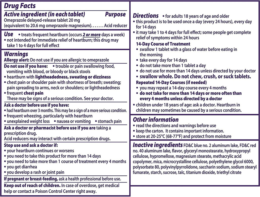 ACTIVE INGREDIENT: Each pill contains 20mg of Omeprazole, an acid reducer that provides long-lasting, 24-hour heartburn relief