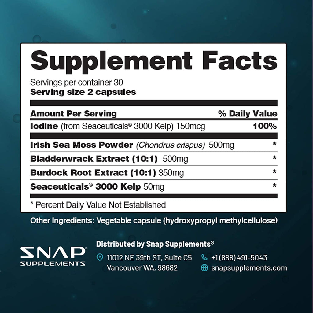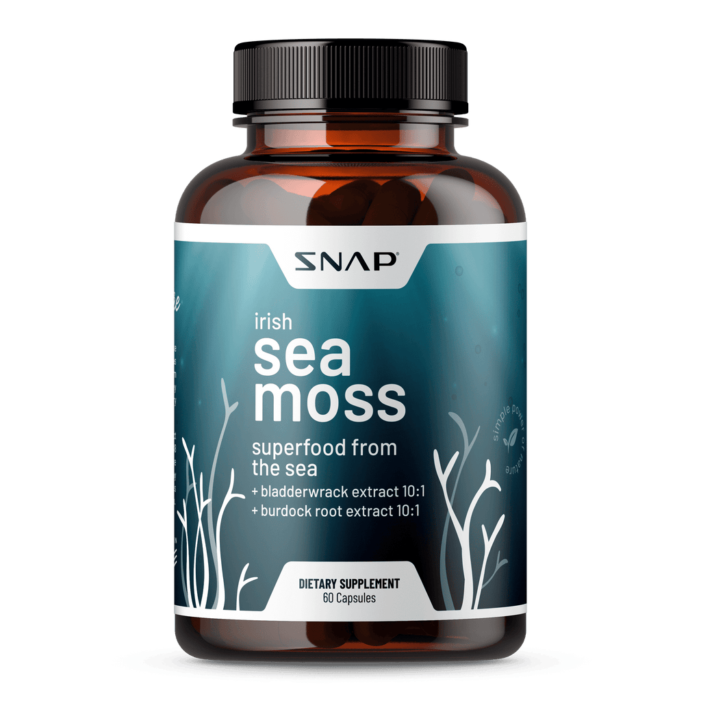 92 Essential Nutrients! Irish Sea Moss contains nearly all of the 102 vitamins and minerals our bodies need to thrive! The benefits of taking snap supplements sea moss are better mood and energy, immune support, better digestive health and it refreshes your skin.