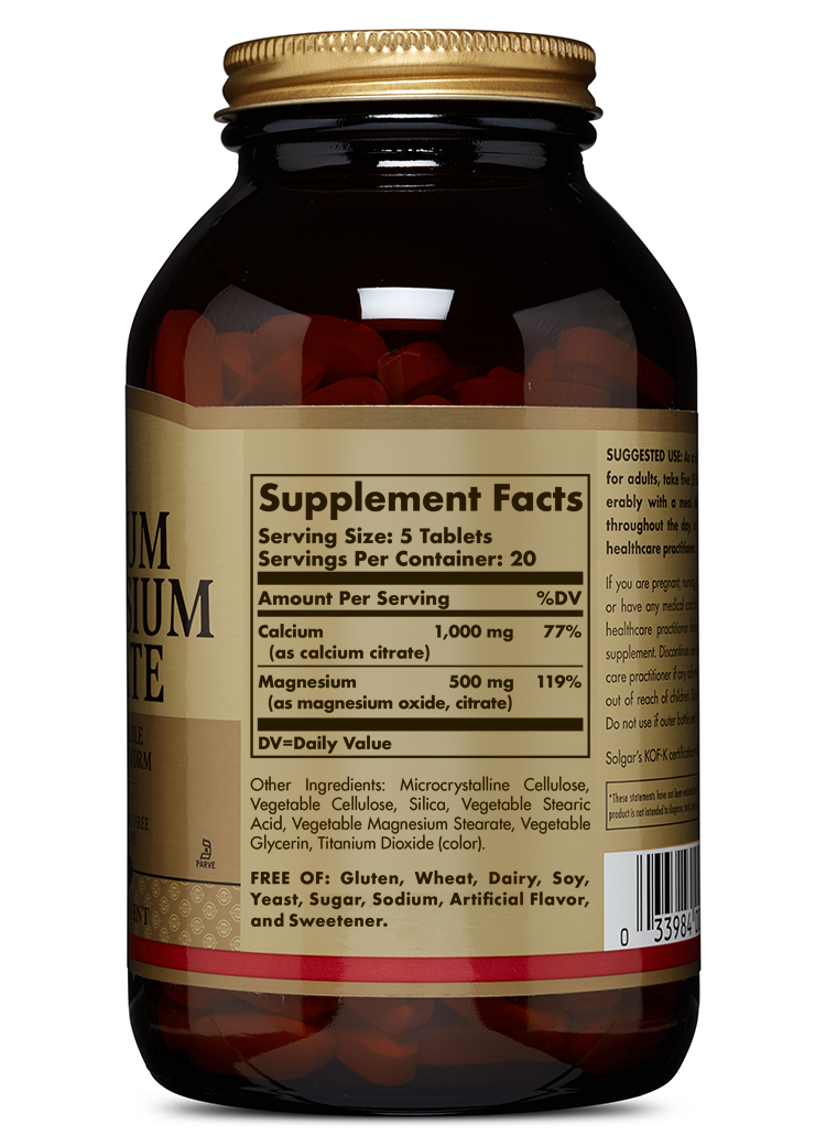 Calcium provides the building blocks that help keep bones and teeth strong and healthy. It also supports the musculoskeletal and nervous systems, and involved with heartbeat regulation. Magnesium helps to regulate calcium transport and stimulates the secretion of calcitonin, a hormone that aids in the influx of calcium into bone. It plays an important role in protein formation and healthy muscle function. This formulation contains the highly absorbable citrate form of calcium.*