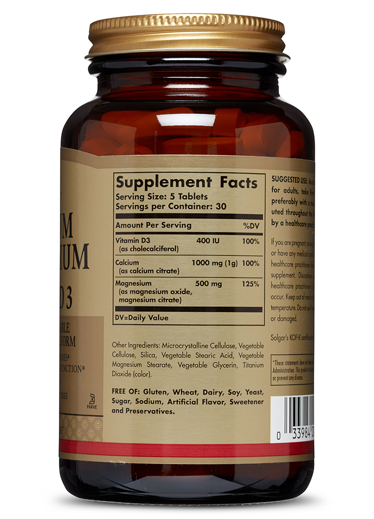 Calcium provides the building blocks that help keep bones and teeth strong and healthy.* It also supports the health of the musculoskeletal and nervous systems.* Magnesium helps to regulate calcium transport and stimulates the secretion of calcitonin, a hormone that aids in the influx of calcium into bone.* Vitamin D is required to promote calcium absorption, which helps to maintain healthy bones and teeth.* Vitamin D also supports a healthy immune system.* This formulation provides Vitamin D3 for daily supplementation. Adequate Calcium and Vitamin D as part of a healthful diet, along w...