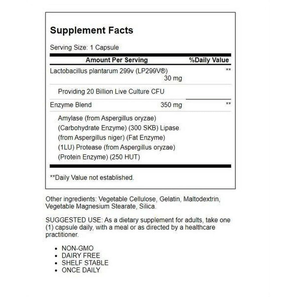 Feel the difference a healthy digestive system can make with Solgar Probi Plus Enzyme. Each serving of this formula delivers 20 billion CFU probiotics, the "good" bacteria found in the gut, including Lactobacillus plantarum 299v. Additionally, each single-capsule serving delivers the enzymes lipase, protease and amylase for added digestive support.