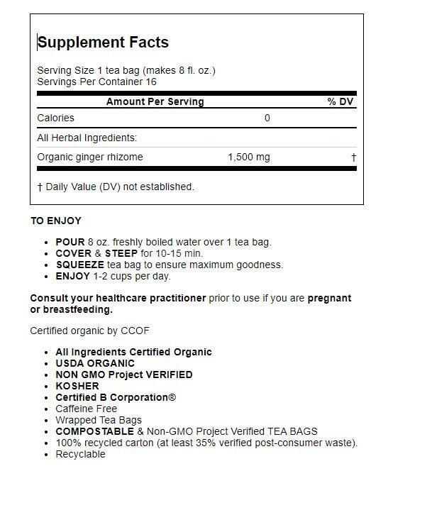 Traditional Medicinals Organic Ginger Tea is a unique tea formula that helps promote healthy digestion. Ginger's beneficial effects on stomach function have been touted and used in China, and this blend is great before or after a meal.